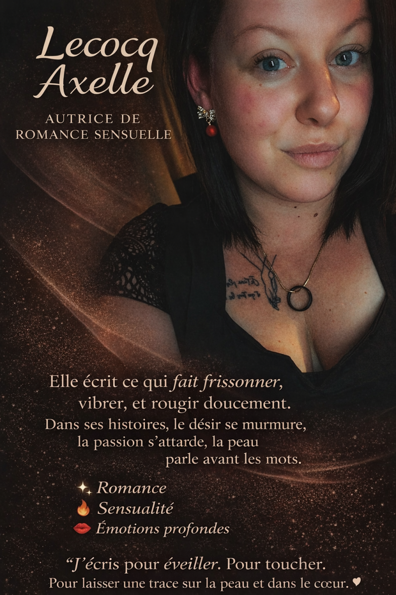 À 29 ans, je suis une autrice-éditrice passionnée par les histoires qui brûlent doucement sous la peau. J’écris des romances où le désir rencontre l’émotion, où chaque personnage se découvre, se perd et se trouve à travers des liens intenses et vibrants.